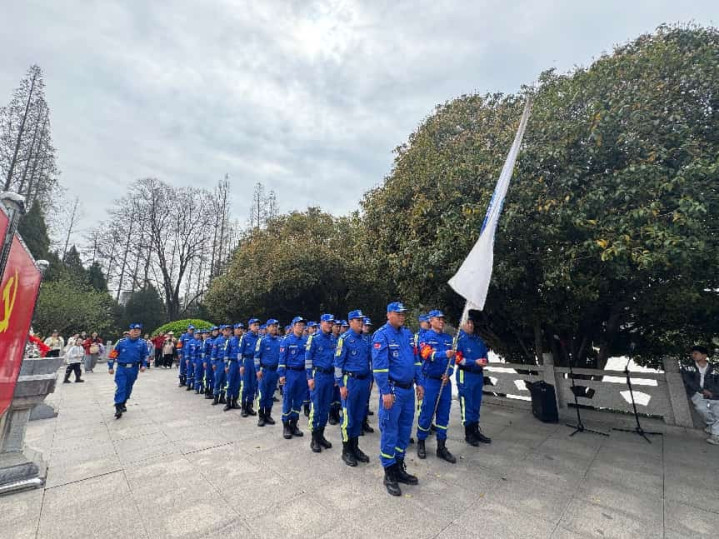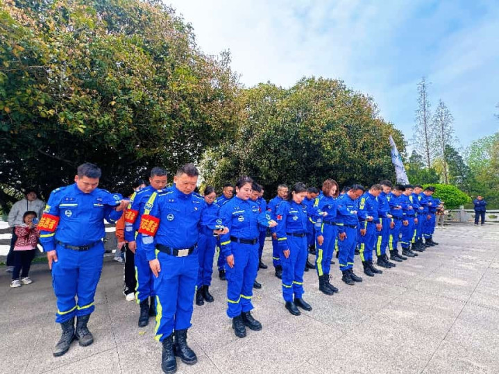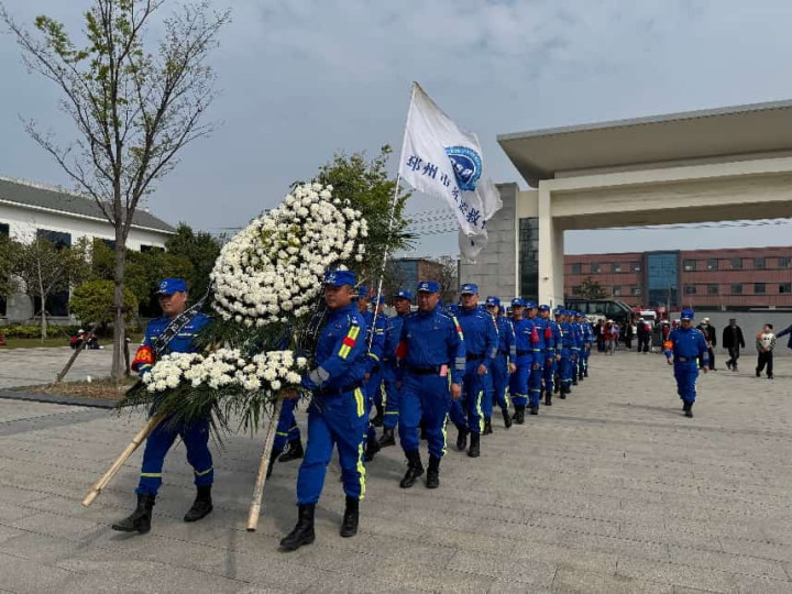 举止现场,松柏凝翠,挂念碑高耸挺拔。辅助队的吉利志愿者们整皆排队于挂念碑正面平台,形势隆重,站姿挺拔。跟着主办东谈主一声令下:“邳州市苏蓝辅助队碾庄义士陵寝祭扫举止郑重运行!”整场祭奠庆典在尊容的歧视中有序伸开。