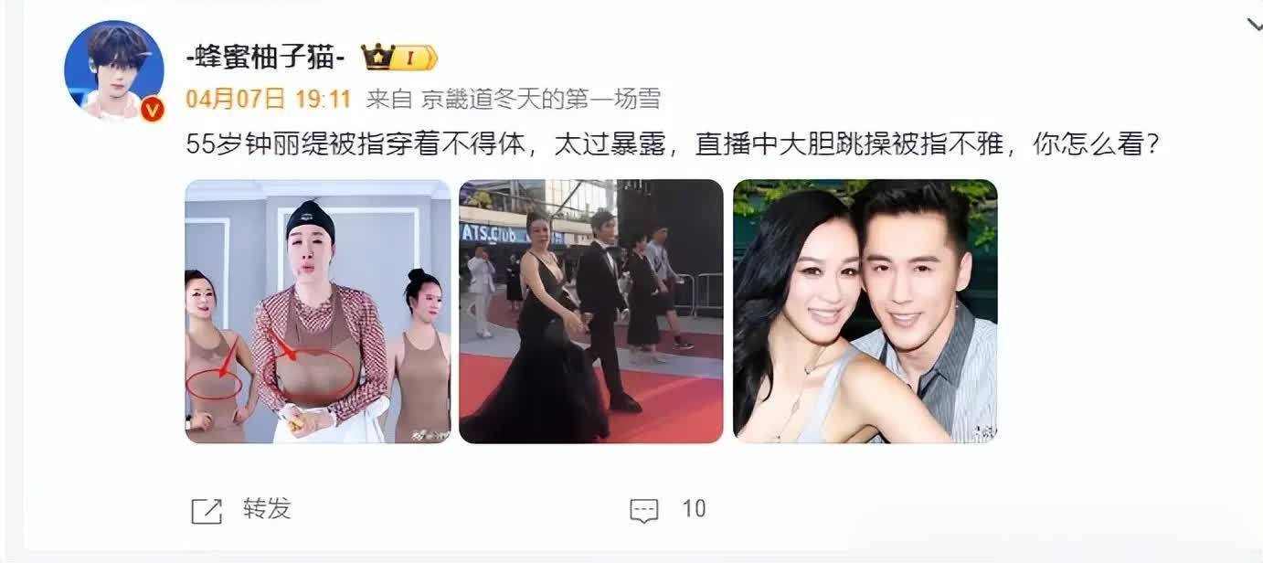 有网友直言:“都55岁了,照旧三个孩子的妈,穿这样自大太不多礼”,“一把年龄还博眼球,不知谈拘谨”。可见,网友们杰出大怒。