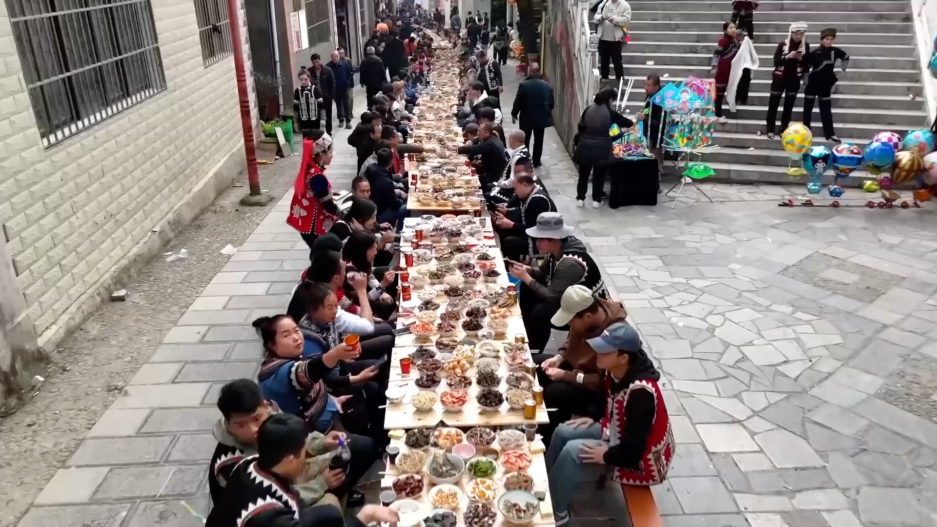 新年开头,位于云南省红河哈尼族彝族自治州元阳县俄扎乡的哈播村,快乐彩app当地哈尼族寰球迎来了一年一度的“昂玛突”节。村民们将梯田鱼、竹虫、干巴等性格好意思食摆上餐桌,数百桌好意思食桌连桌,凳连凳,沿街一字排开,宛如长龙在村里迤逦。