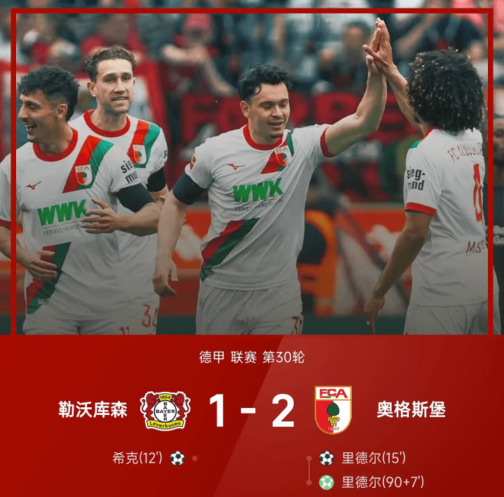 25/26赛季德甲联赛第30轮,奥格斯堡2-1慑服勒沃库森。上半场第12分钟,希克破门,快乐彩app官方下载匡助勒沃库森获得1-0跳跃,但只是三分钟后,里德尔的进球便匡助奥格斯堡1-1扳平比分。下半场第97分钟,里德尔点射破门完成梅开二度,奥格斯堡奏效绝杀药厂。此外,勒沃库森高下半场有两粒昭着点球未判罚,也引起了宏大争议。