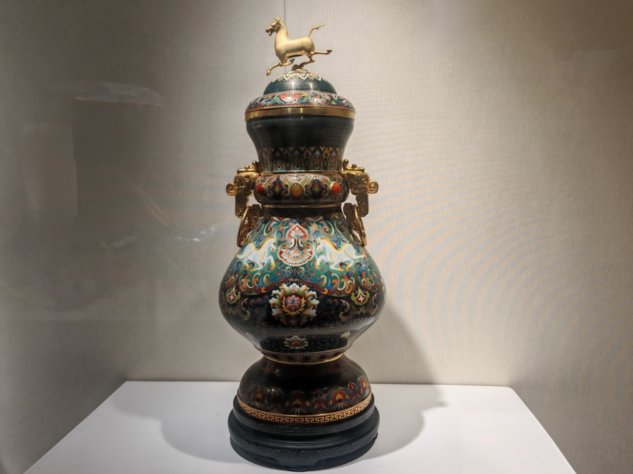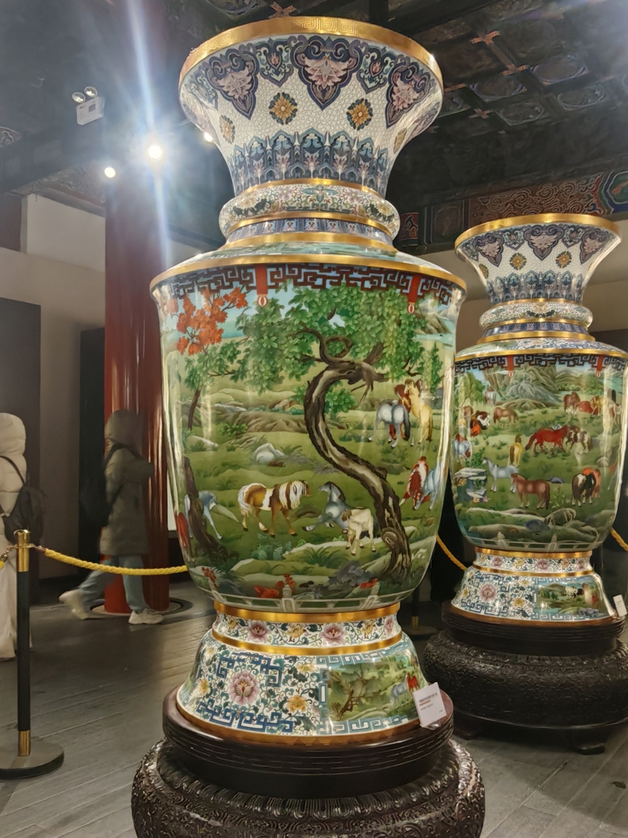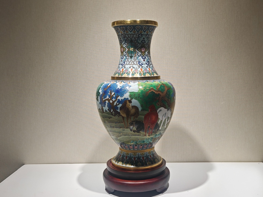 景泰蓝八骏瓶。