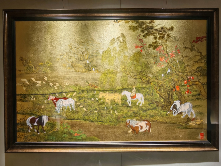 洒金骏马挂屏。
