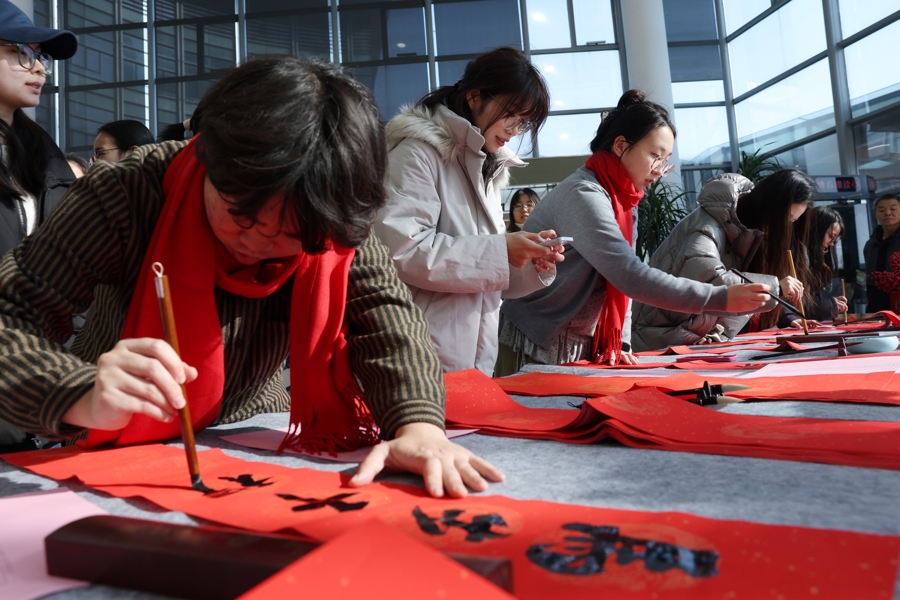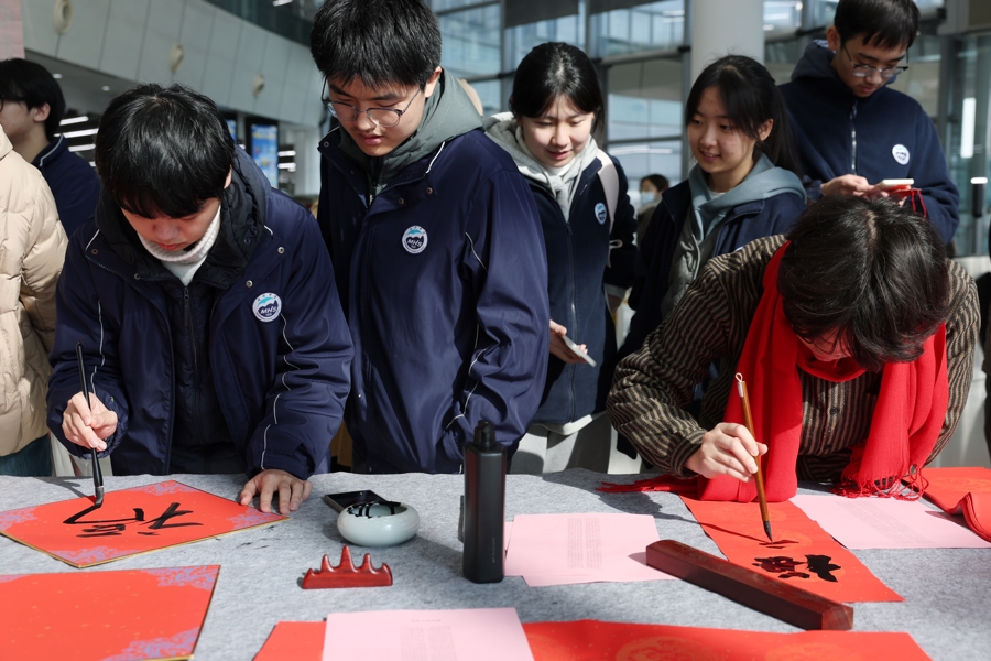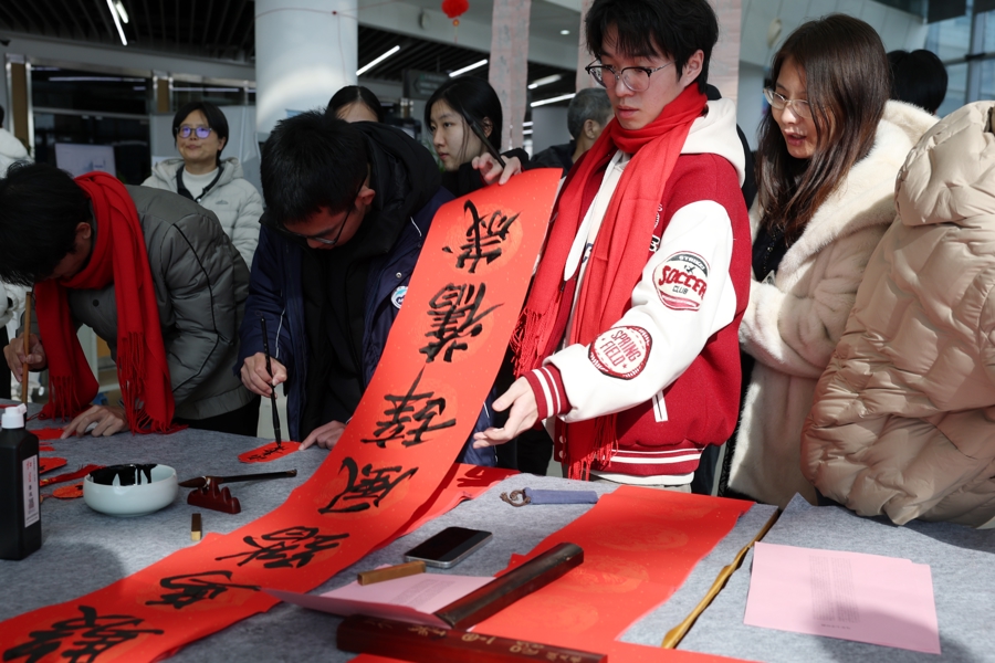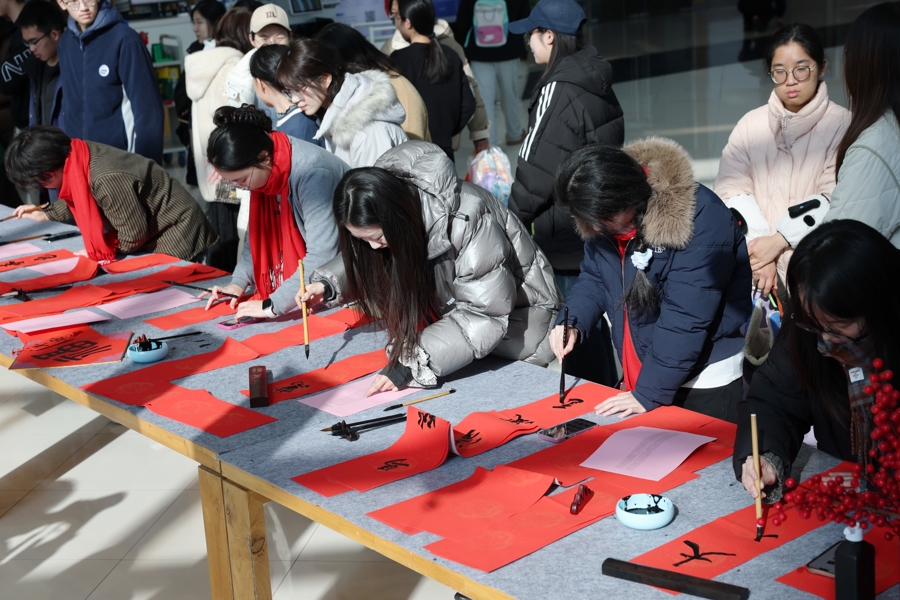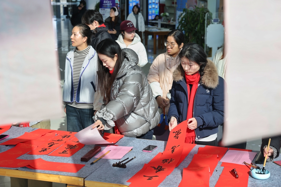 1月9日,华东师范大学一年一度的传统文化行径“东谈主东谈主写对子”在闵行校区藏书楼举行。师生们铺展红纸、研磨挥毫,在横竖撇捺间体悟文化之好意思,世界杯以翰墨传递奋进力量、送出新春道贺。