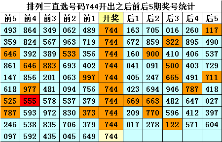四、摆设三直选号码744历史上开出10次,快乐彩app下载其前后五期奖号永别为:
