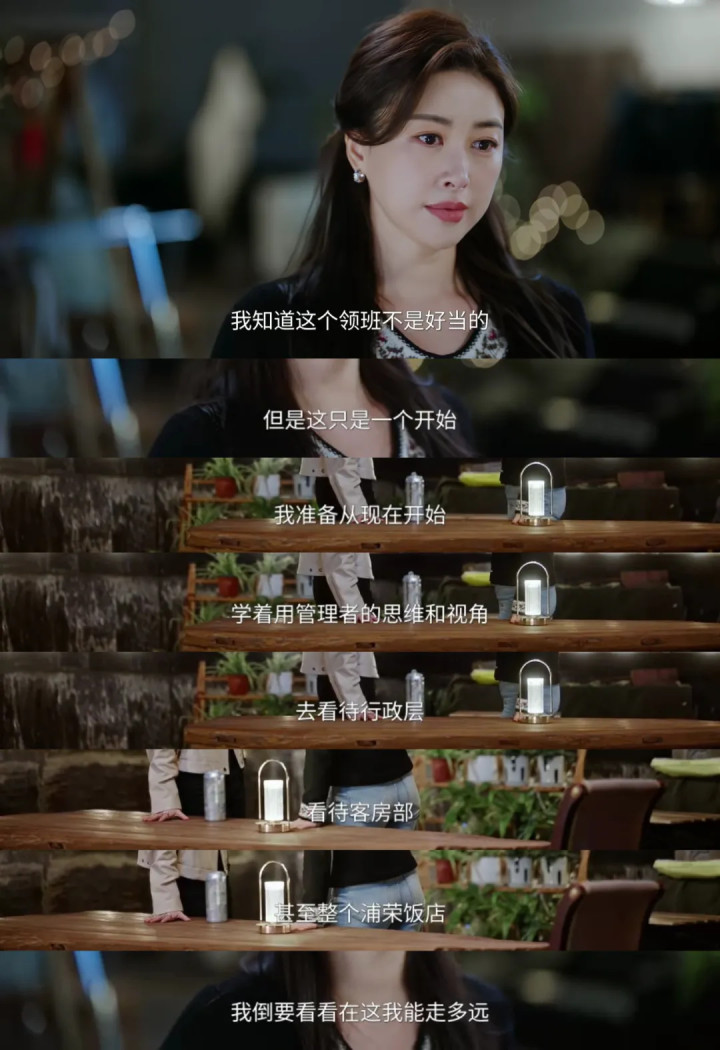 从家庭主妇到栈房客房工作员,再到行政层工头,蜜语的身份流转,跟随着叙事空间的伸开。当全剧的重点更始到职场上来,故事的精彩进程提高不少。