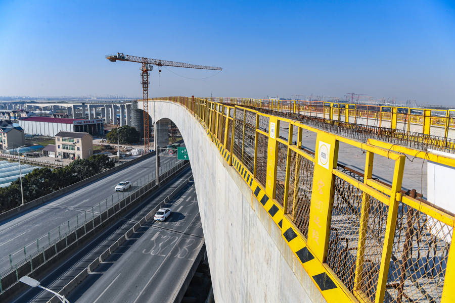 宏润建筑集团有限公司南汇支线(两港市域铁路)工程NHSG-10标坐蓐司理何舟向记者先容:“合龙之后,施工团队这几天正在进行收尾责任,并合手紧时刻完成跨两港公路干线边跨现浇箱梁支模架搭设责任。”