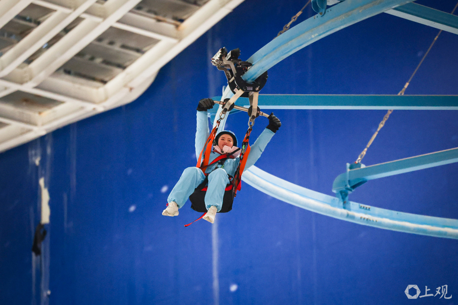 跳水奥运冠军陈芋汐和前女排国手及奥运银牌得主诸韵颖展示雪上排球、体验飞雪滑翔机。