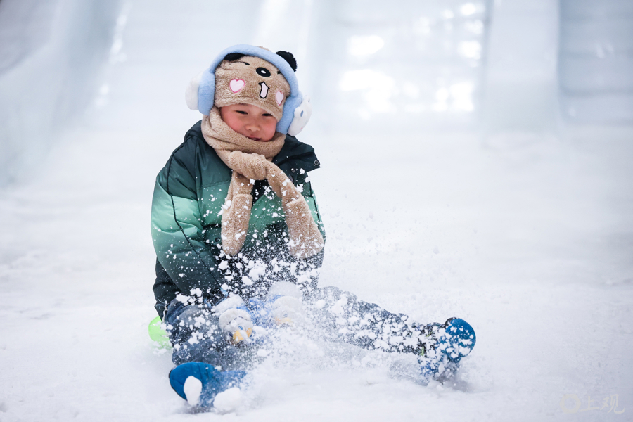 元旦假期,市民旅客来到耀雪冰雪世界体验雪上开通,享受亲子时光。