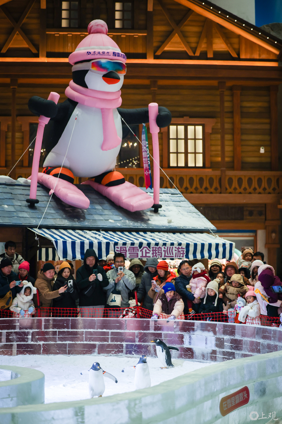 市民旅客可近距离不雅察企鹅,参与为止时段的企鹅巡游。 憨态可掬的企鹅来到雪场巡游,为亲子家庭提供“科普+文旅”新体验。