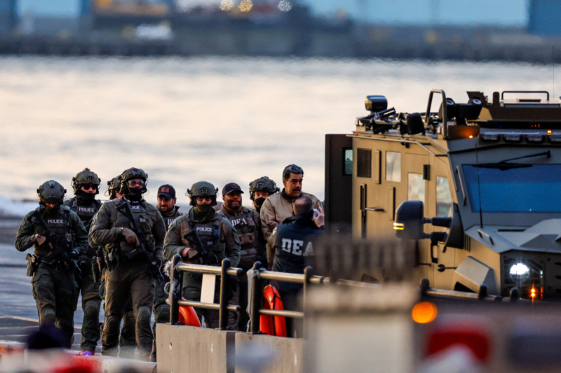 1月5日,在好意思国纽约,委内瑞拉总统马杜罗在国法东谈主员追随下赶赴联邦法院。 新华社