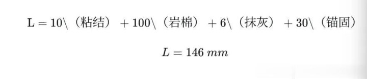 保温钉长度 = 粘结层(约10mm) + 岩棉厚度 + 抹面层(约6mm) + 有用锚固深度(25-50mm,视墙体而定)。