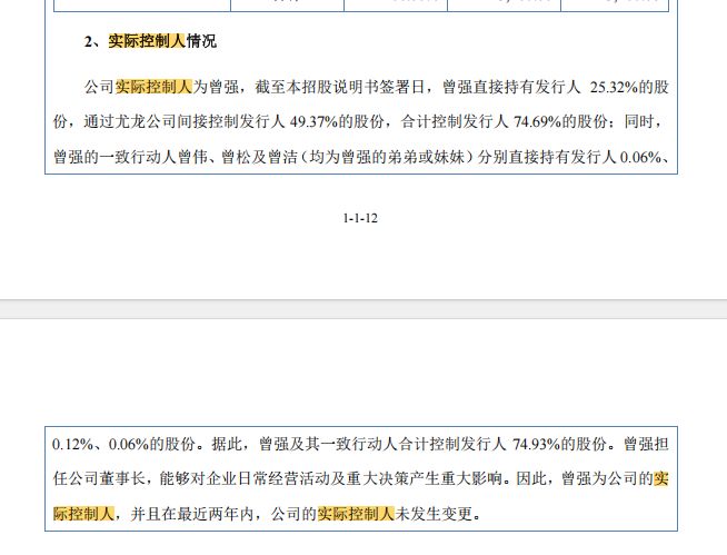 凯龙洁能是一家典型的家眷企业。公司本体胁制东说念主曾强通过径直和盘曲方式悉数胁制着刊行东说念主74.69%的股份。若算上其弟弟或妹妹曾伟、曾松、曾洁等一致活动东说念主,曾氏家眷掌控的股权比例高达74.93%。这种“一股独大”的款式下,身兼董事长的曾强对企业经营领有整个语言权。