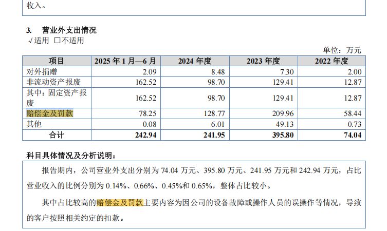 风险不啻于经营层面。发达期内,凯龙洁能买卖外支拨隔离为74.04万元、395.80万元、241.95万元、242.94万元。招股书对此暗意,其中占相比高的补偿金及罚金主要内容为因公司的开拓故障或操作主说念主员的误操作等情况,导致的客户按照谋划商定的扣款。