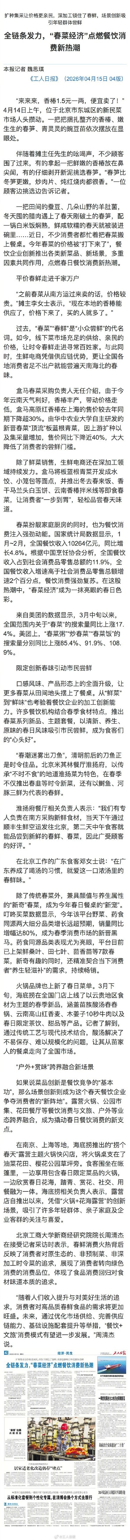 “跟着东说念主们收入擢升与对好意思好生计的追求,耗尽者对高品性春鲜食物的需求将愈加同意。异日,通过优化市集供给、完善供应链才气、基础时代配套擢升等举措,‘餐饮+文旅’耗尽方式有望进一步发展。”周清杰说。(工东说念主日报)