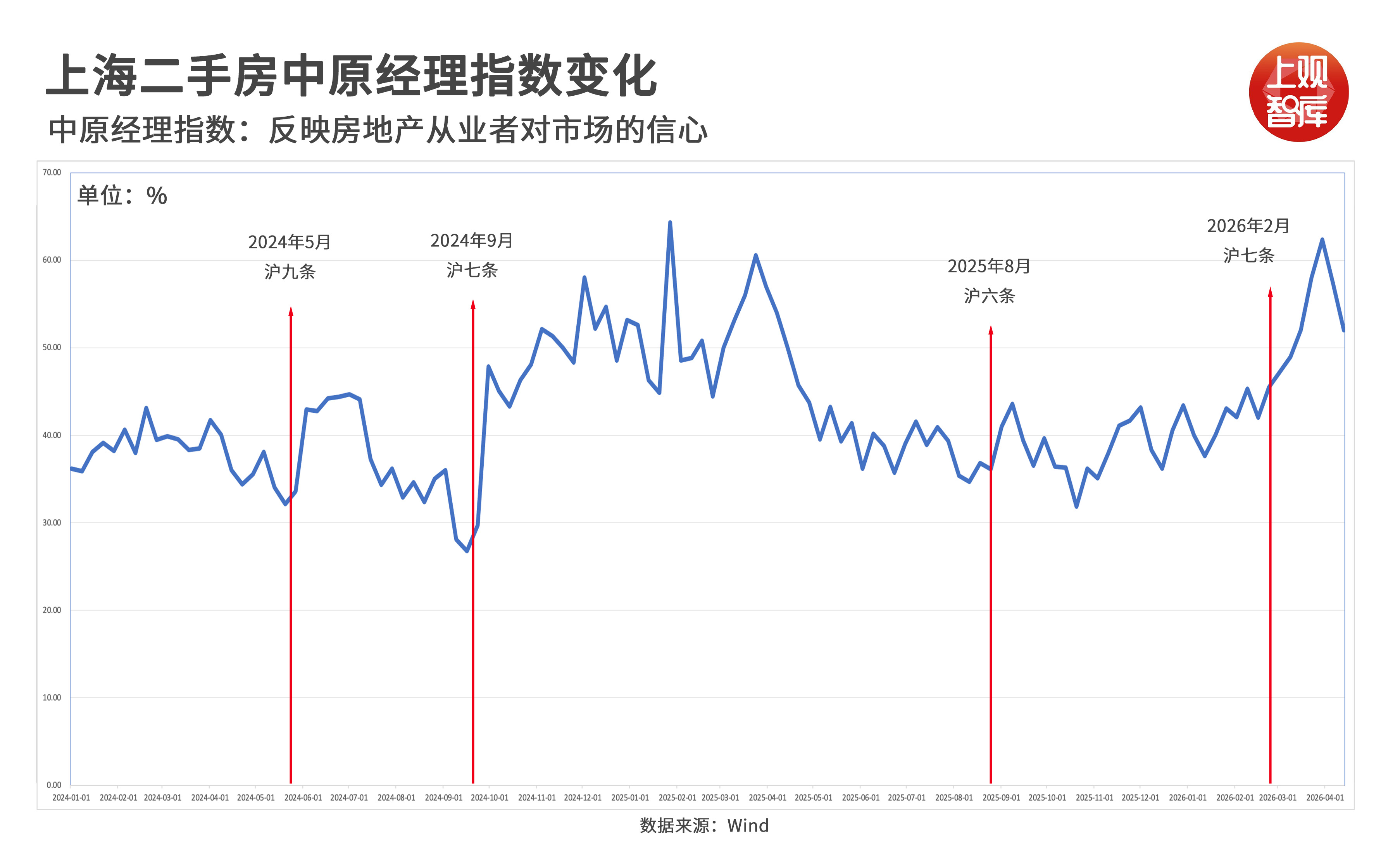 华夏司理指数反应了地产司理东说念主对城市房地产市集走势的宗旨。一般来说,大于50%即可合计市集处于向好区间。数据裸露,上海二手房司理指数在3月末达到62.32%的高点。