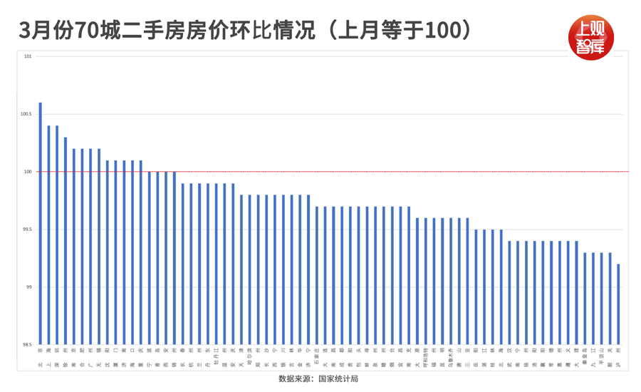 从国度统计局最新发布的70城数据来看,2月份春节淡季时间,上海成为唯二二手房环比飞腾的城市,3月份再次完毕环比上升,达成二连涨。